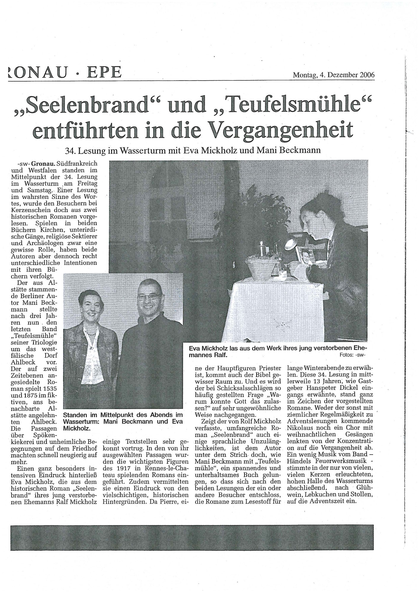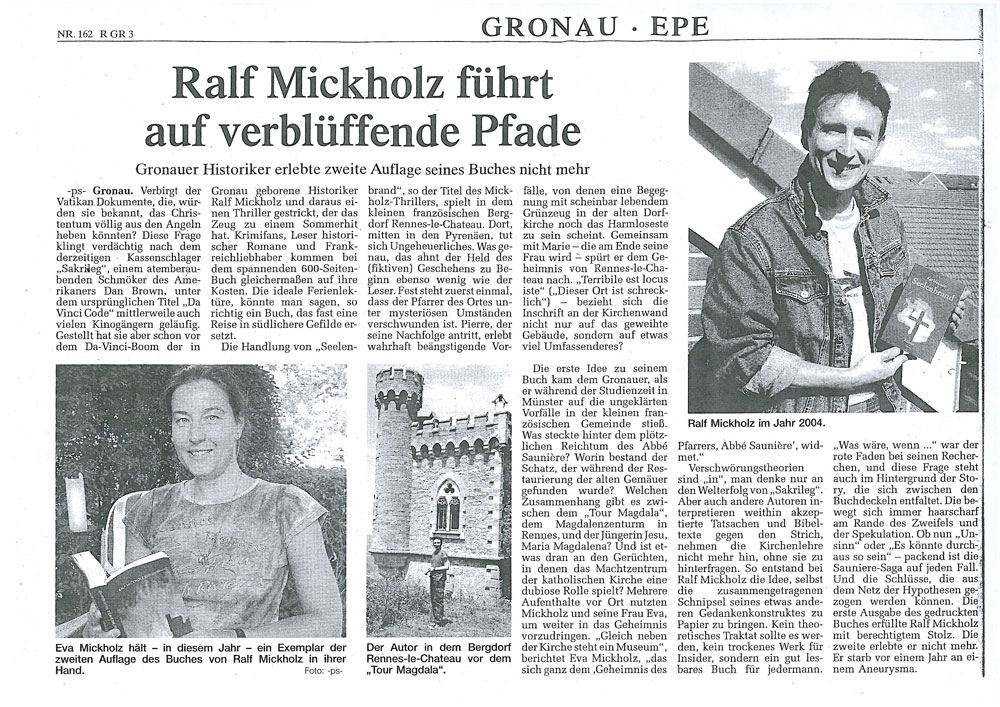 interessiert, vorzustellen. Im Juli 2006 hatte ich erstmals den Mut zu einem Zeitungsinterview über Ralfs Buch. Im Lokalteil der "Westfälischen Nachrichten" seiner Geburtsstadt Gronau erschien passend zum Kinostart von "Sakrileg" ein langer Artikel.